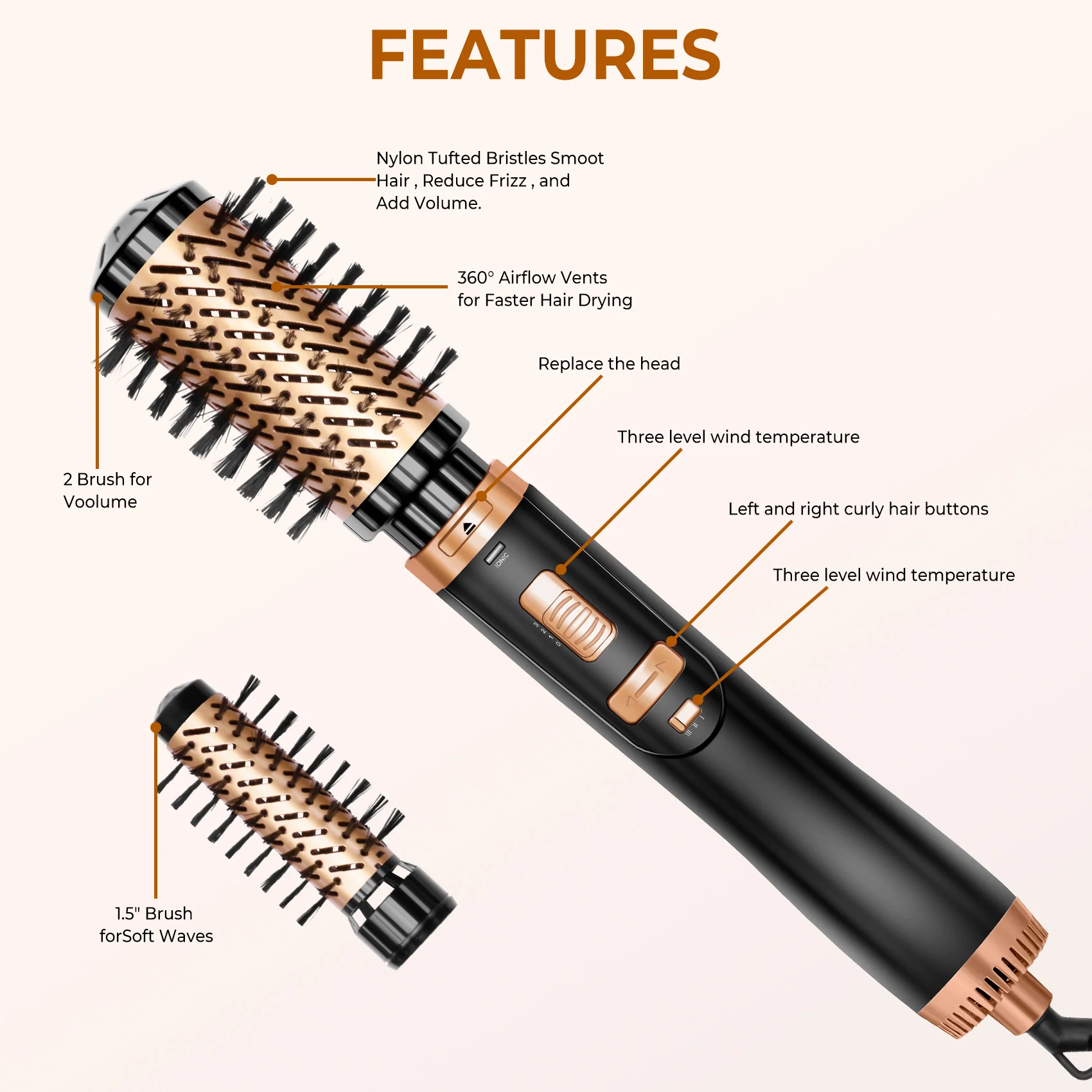 Modelo: Professional Hair Dryer 6 in 1 Hair Styler Hot Air Comb